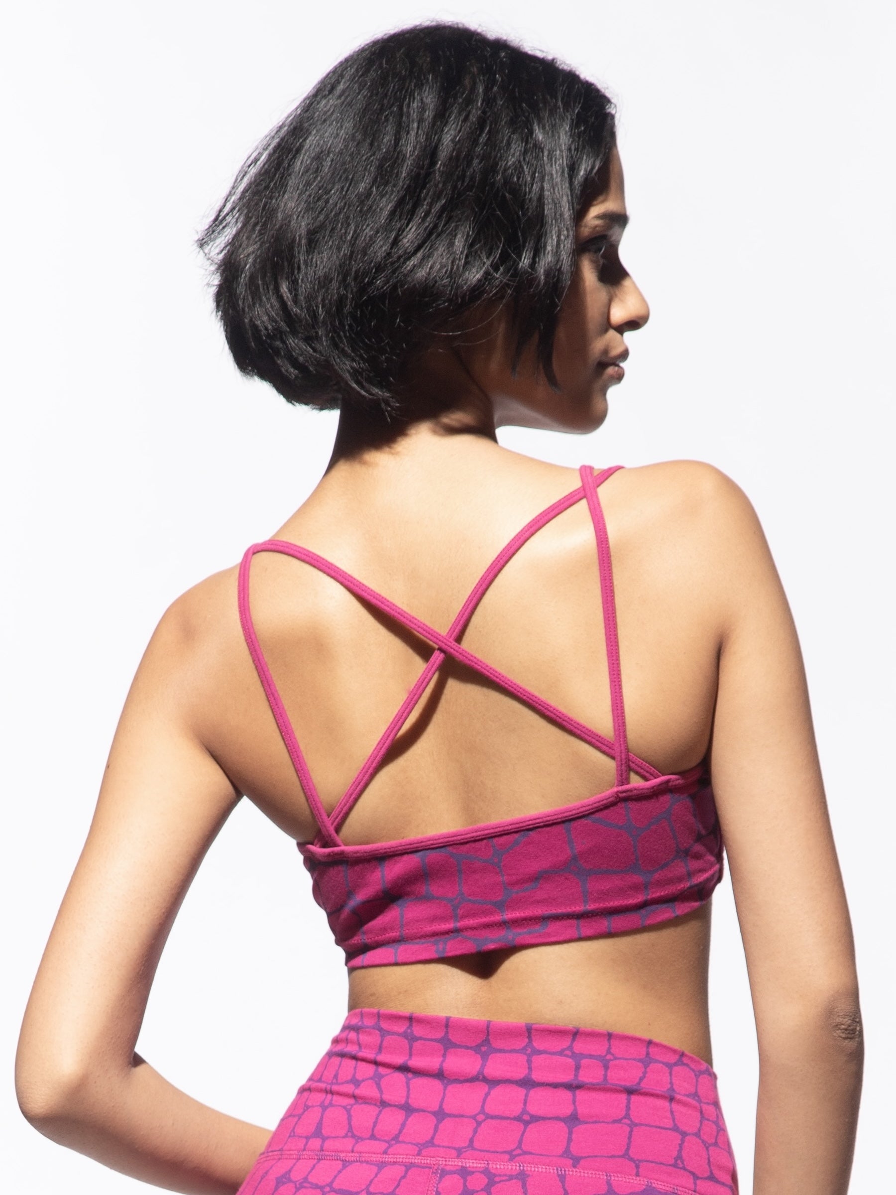 Crocodile Cross Back Bra - Fuchsia Pink