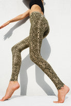 Eine wunderschöne Creme-Baumwoll-Elastan-Leggings mit unserem Schlangendruck in Olivgrün. Hergestellt aus hochwertigem Baumwoll-Spandex aus Bali, Indonesien. Die Zusammensetzung aus 90 % Baumwolle und 10 % Spandex verleiht diesem Material einen weichen 4-Wege-Stretch, der sich auch nach vielen Wäschen nicht dehnt oder an Form verliert.