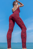 This Red Black Feather catsuit-unitard is simply fantastic to wear. It feels sleek, slinky, and gives perfect coverage, even when you are in the cow or cat pose at your local yoga class! Whether you are wearing it on its own to show off your curves, or paired with shorts or a mini skirt or a loose-fit top, it will always look fantastic. Its made in fair trade conditions on the beautiful island of Bali from top-quality cotton spandex that always holds its shape. It doesn't shine and has 0 transparency.