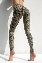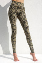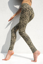 Eine fantastische cremefarbene Leggings mit einem schwarz-senfgrünen Jaguarprint, die auch nach vielen Wäschen ihre Form und Farbe behält.