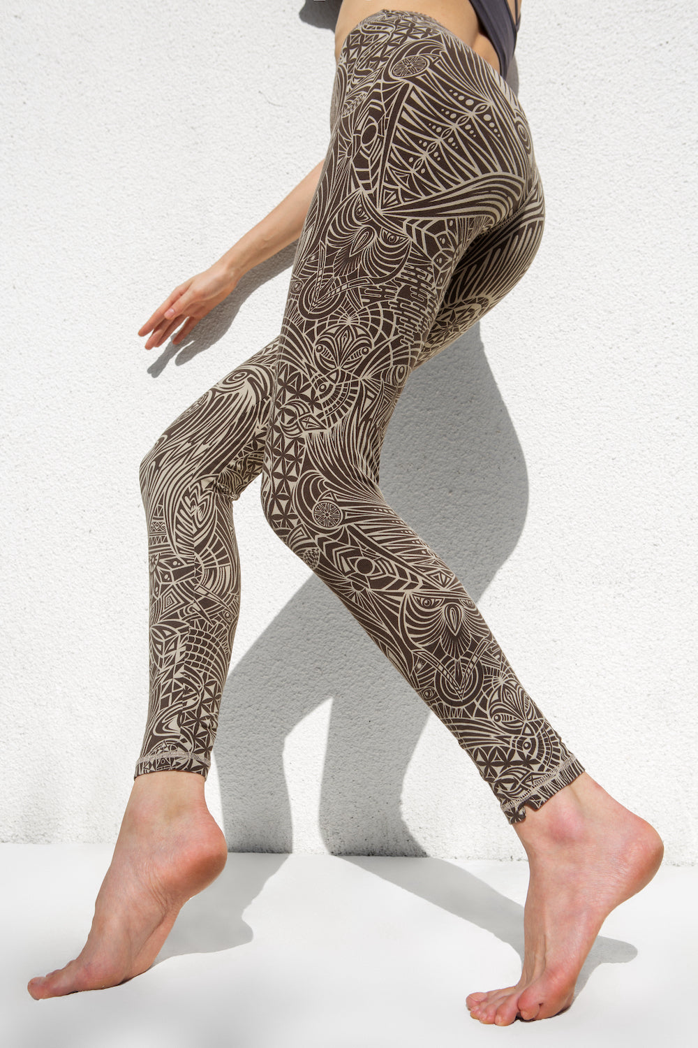 Super High Waist Leggings in Creme mit unserem beeindruckenden braunen Stammesadlerprint.