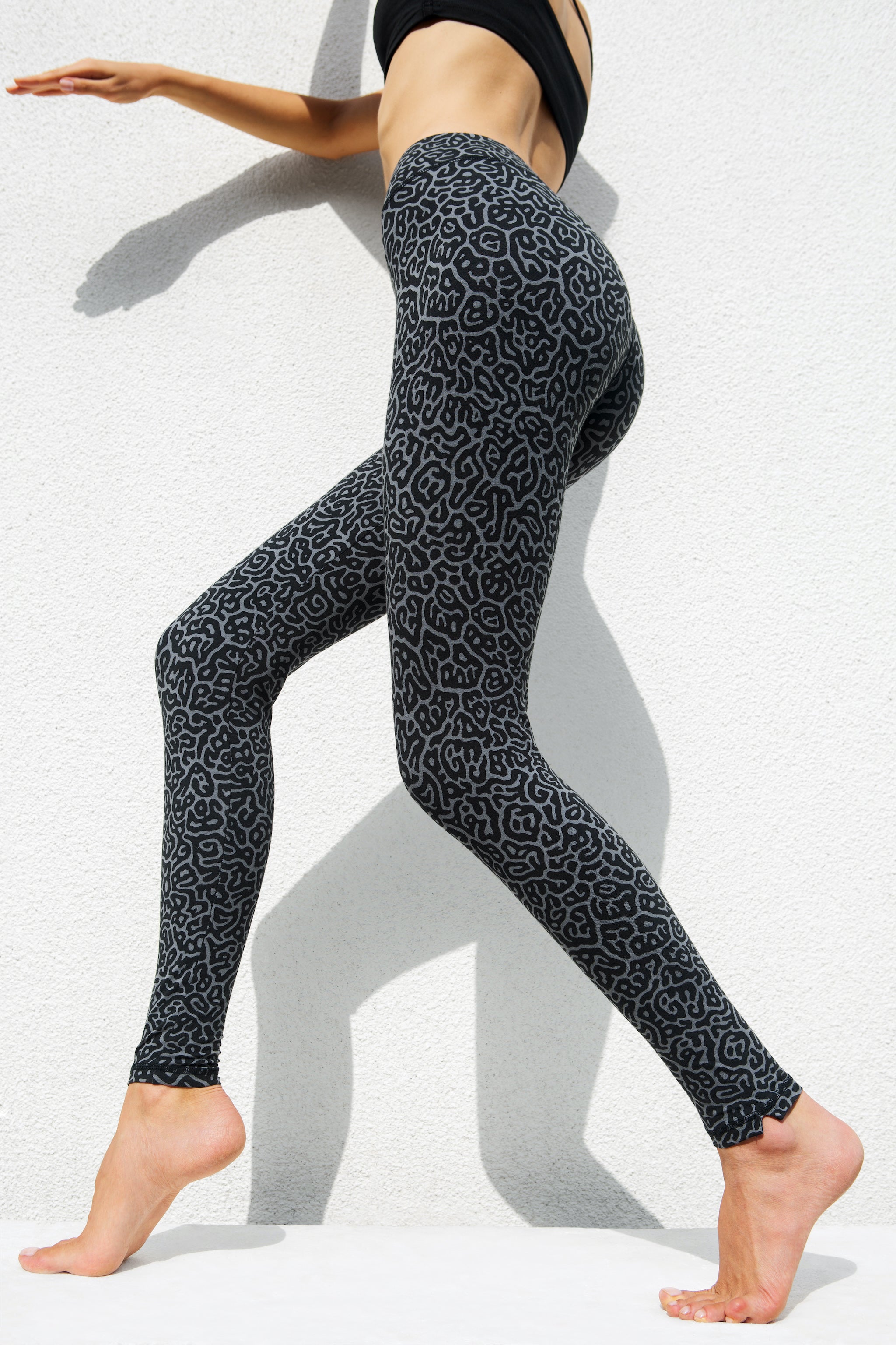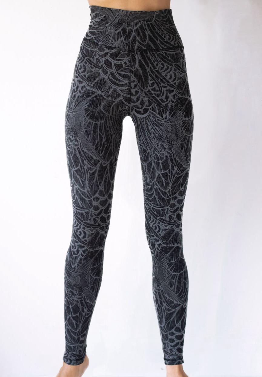 Feather Leggings - Black Grey