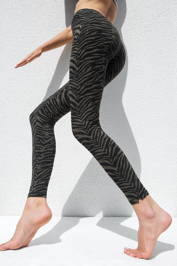 Zebra Leggings - Olive Black