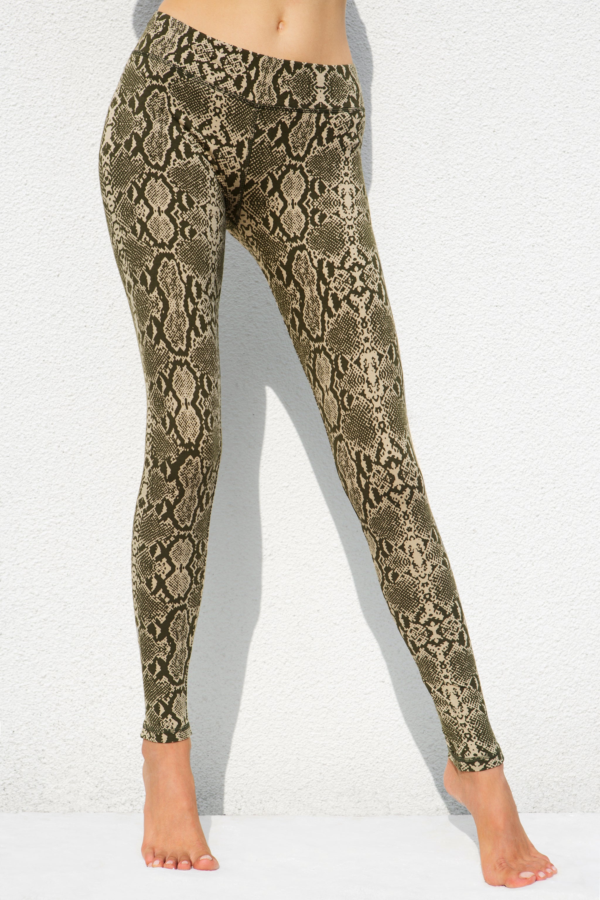 Snake Leggings - Cream Olive