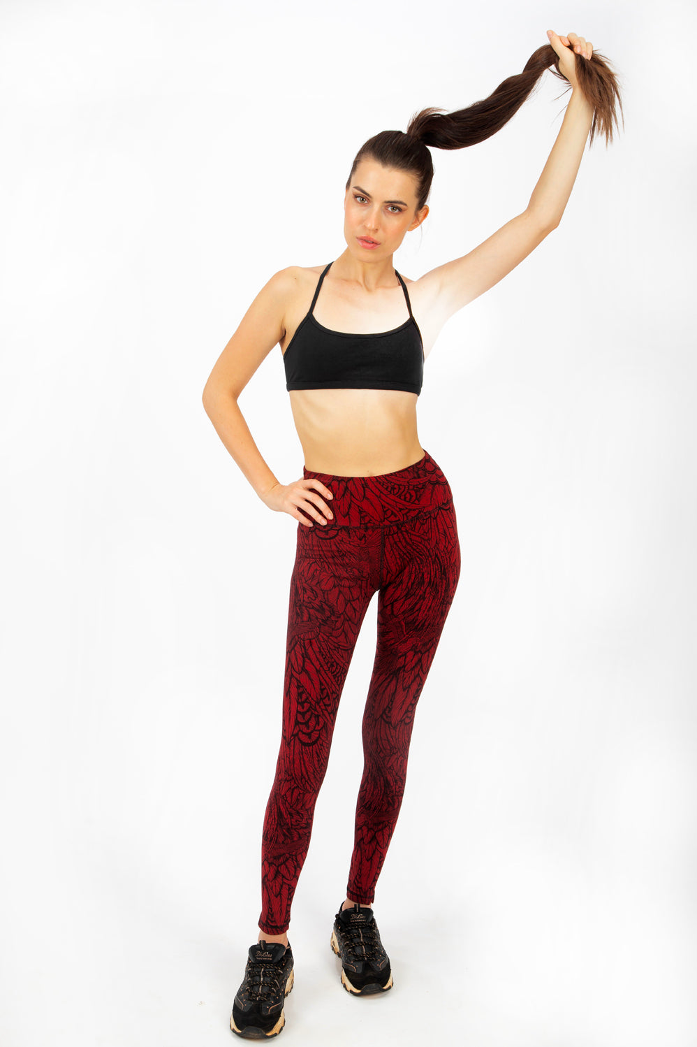 Feather Leggings - Red Black