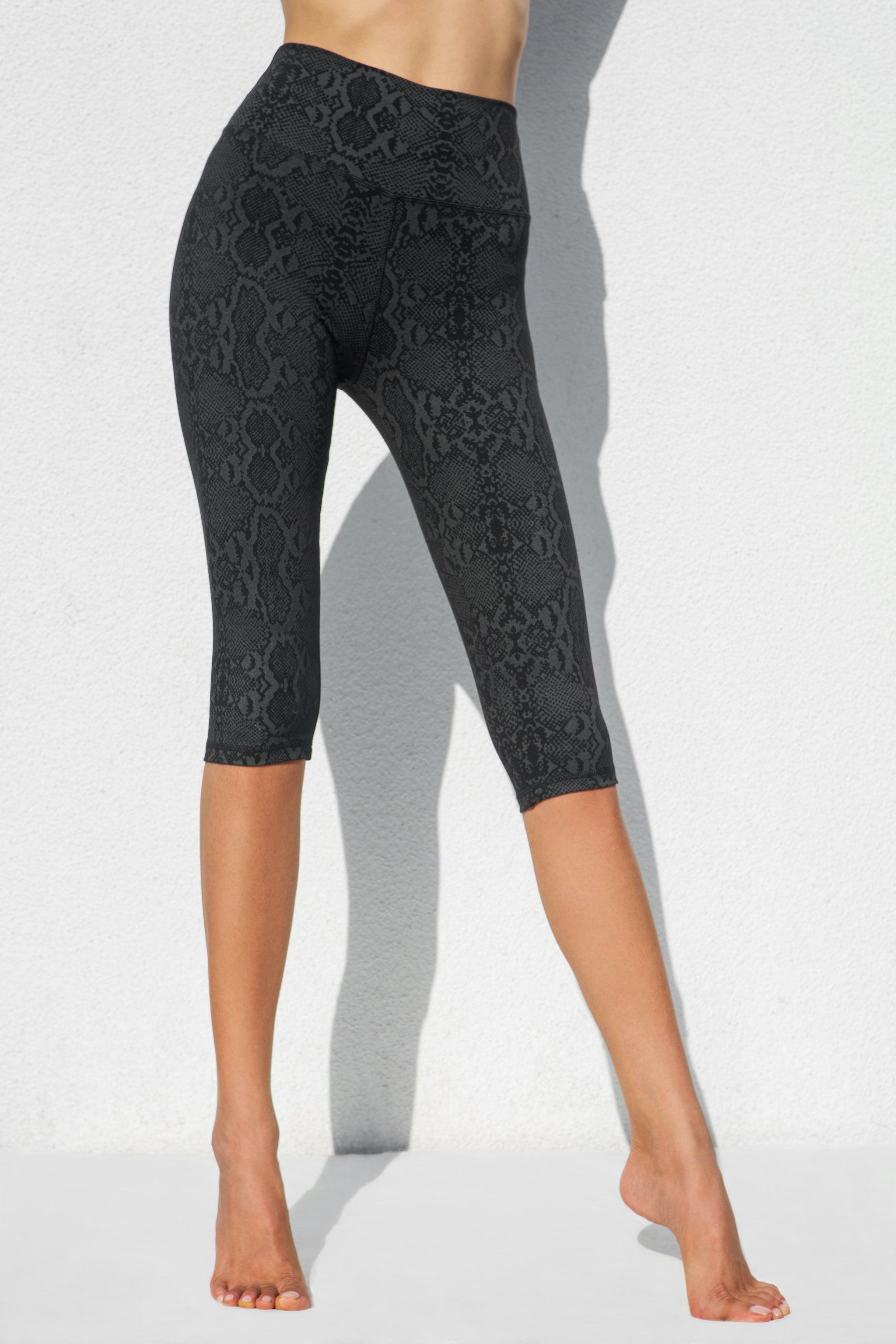 Snake Capri Leggings - Black Grey