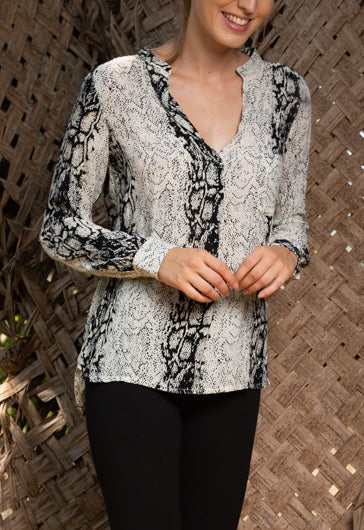 A simple yet beautiful cut blouse with a V-neck made of the softest high-quality rayon voile. It lasts and stays beautiful for years and years - amazing quality.