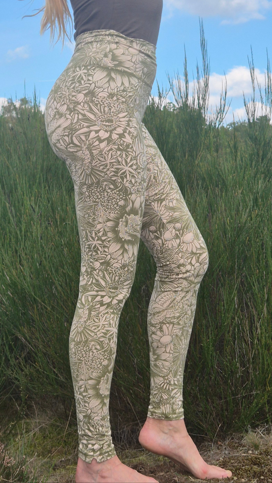 High Waisted Cream Leggings with our new Olive Bloom print.