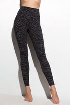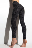 Our Black Grey Zebra Leggings are available in both our waist-heights; The high waist is with a wider band that sits very comfortable around your waist. You can also fold over the band to make your leggings at the exact height you prefer. Great to keep the kidneys warm. The Medium High waist has an elastic in the waist band and sits about 5 to 7 cm below your belly button.