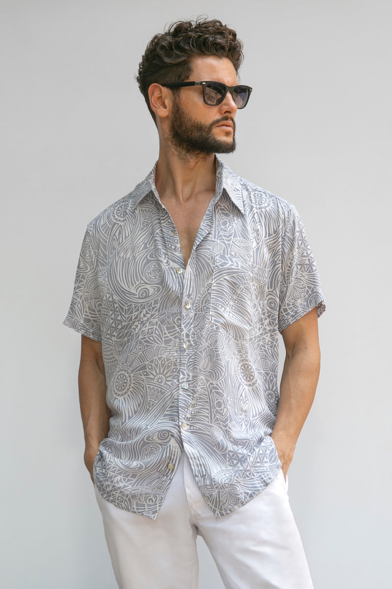 Finally a shirt for men in our amazing rayon voile material. Soft, flowy, light and super comfortable. Stays beautiful no matter how many times you wash it, no pilling. High quality and with our gorgeous Tribal Eagle print in grey.