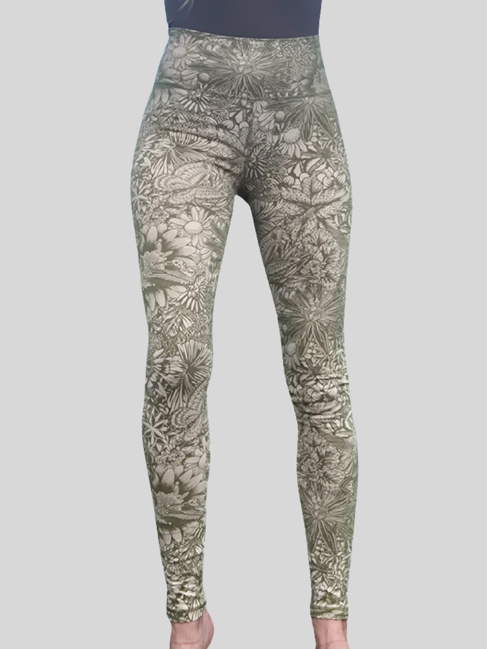 High Waisted Cream Leggings with our new Olive Bloom print.