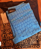 A fantastic pair of Turquoise leggings with a darker blue crocodile print, which will last wash after wash.