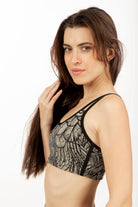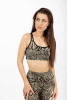 A great sporty bra top with a cross-back strap back in the new feather print.