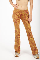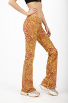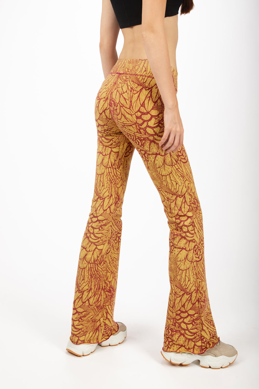 We offer you this limited edition mustard yellow flared leggings with our gorgeous Feather print in red. Our bootleg style pants come with a slight flare starting at the knee. These are available with a super-high waist band for keeping your love-handles in check or in the medium high waist. Both have great comfort and style.