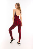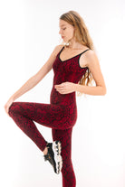Our Red black snake print catsuit is made from high-quality cotton spandex in fair trade conditions in sunny Bali. It keeps its shape, doesn't shine and it doesn't get transparent however much you stretch in yoga class.