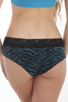 Gorgeous seagreen black zebra hipster underwear with the softest lace. In super soft seagreen cotton spandex with our black Zebra print. Great camel-toe protection because of our double layer in the crotch. No seams around the legs so, they don't leave Visible Panty Lines.