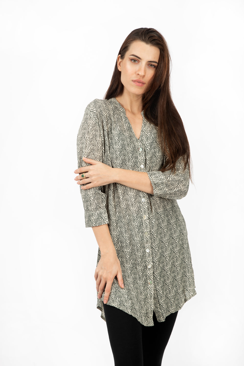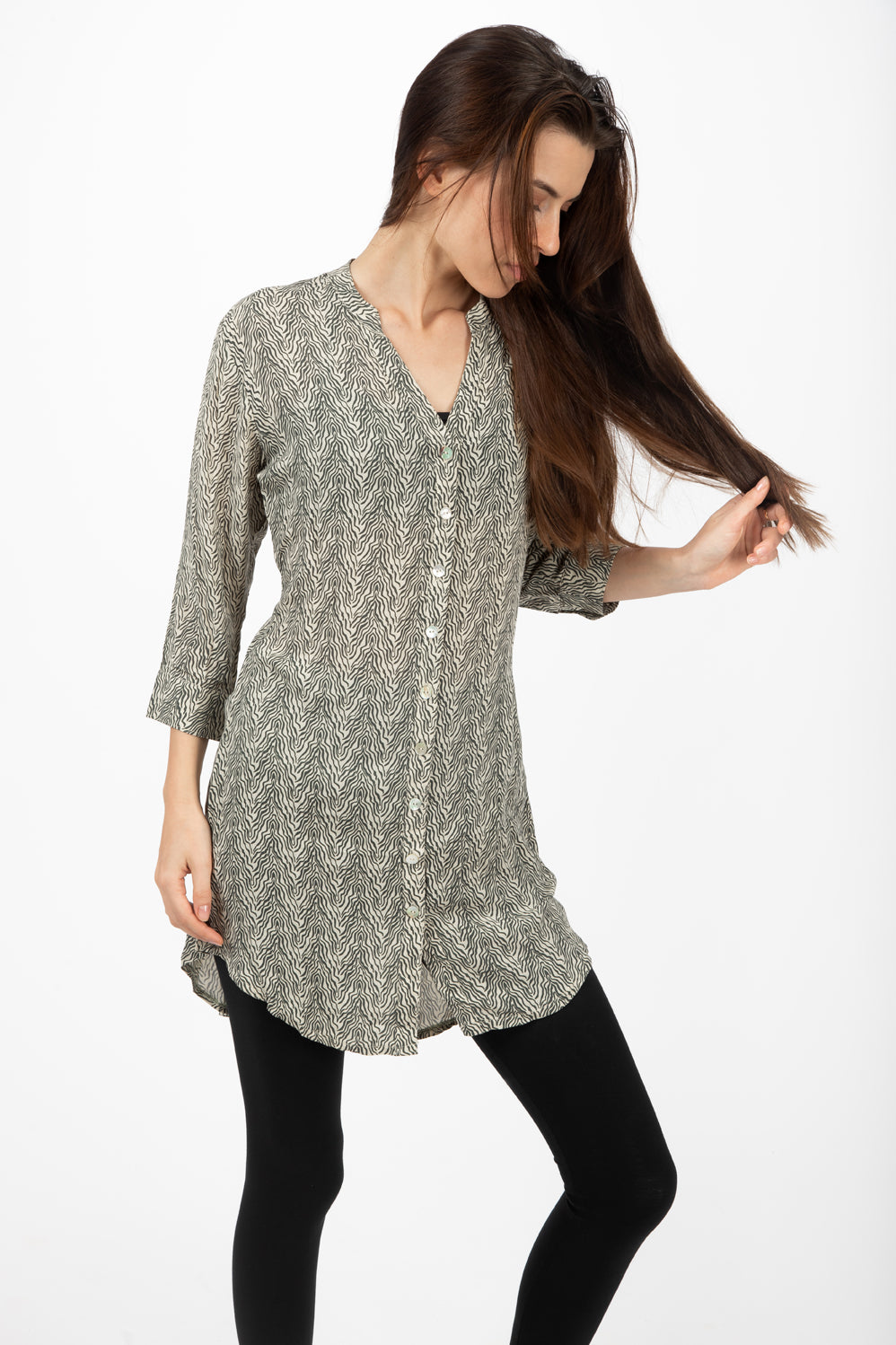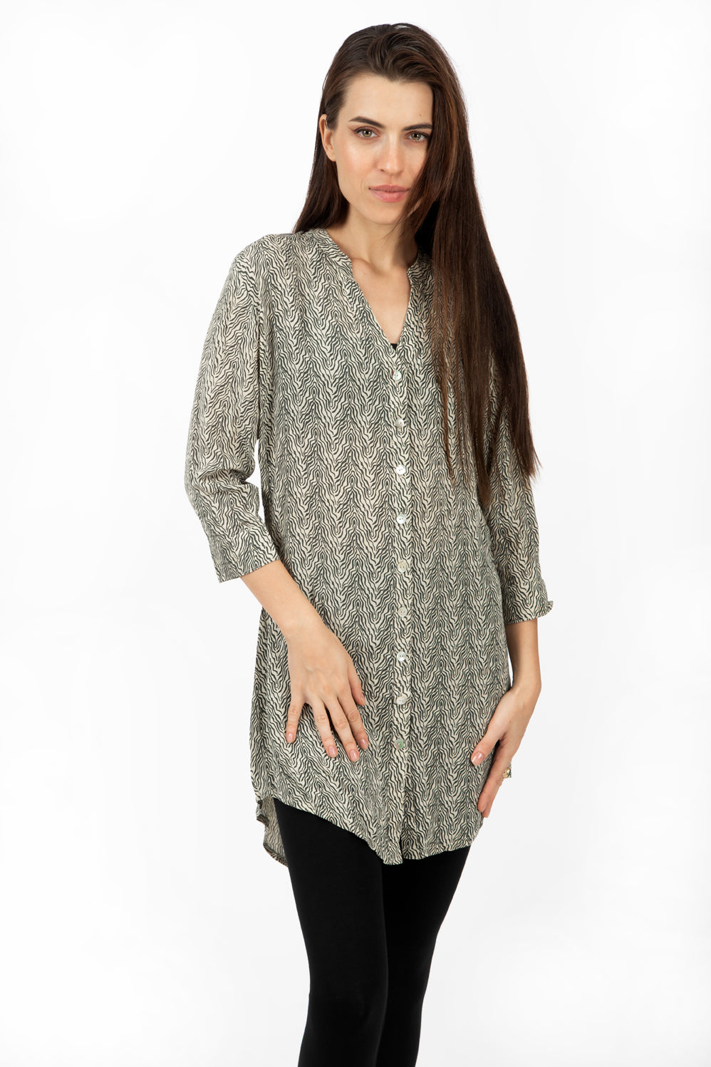 A simple yet beautiful cut blouse with buttons all the way down. Made with the softest high-quality rayon voile. It lasts and stays beautiful for years and years - amazing quality. Falls like water on the skin