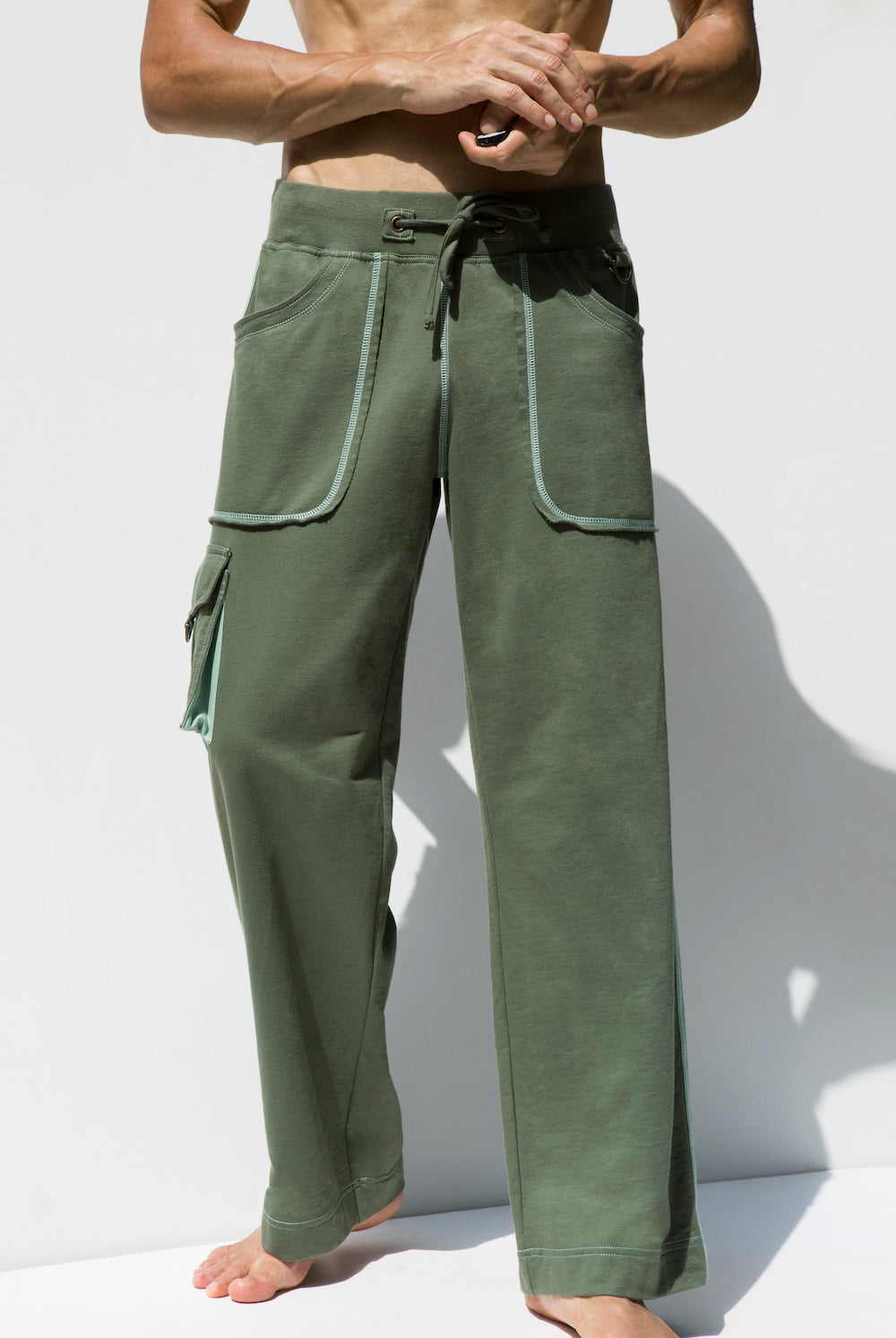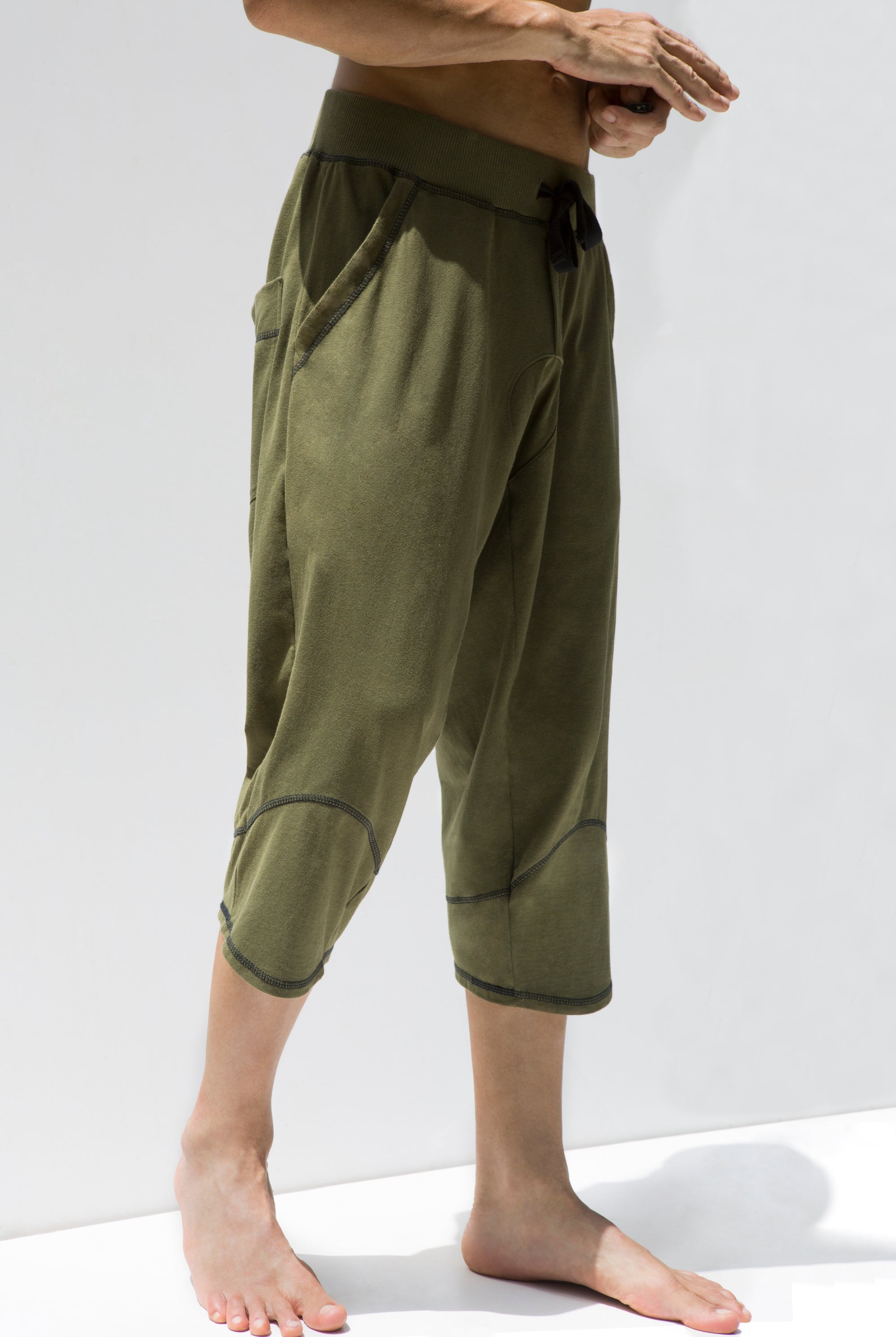 Men 3/4 Pants - Yoga Men Capris - Olive Green